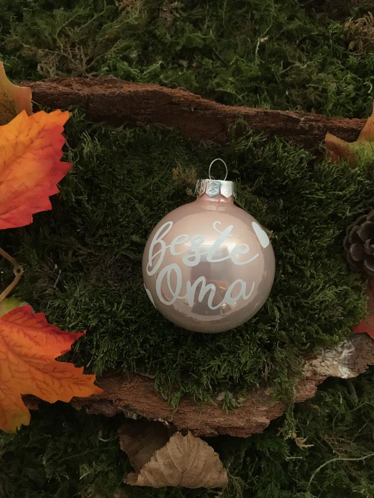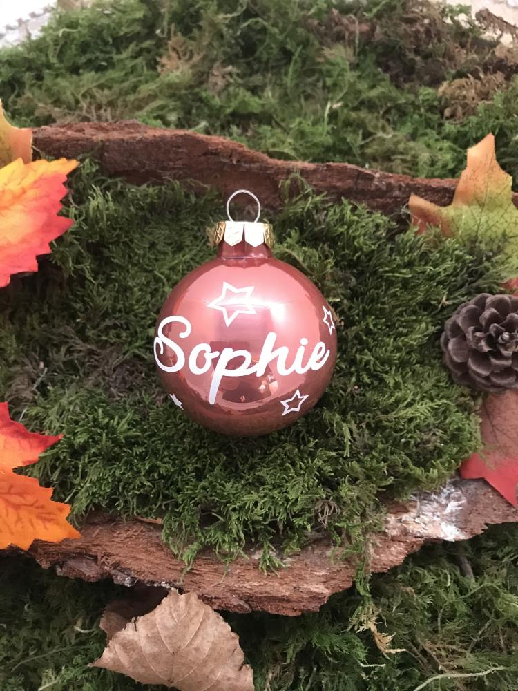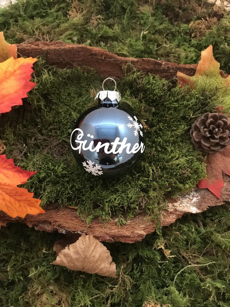Ich fertige eure persönliche Weihnachtskugel mit eurem Wunschnamen und in eurer Wunschfarbe an.